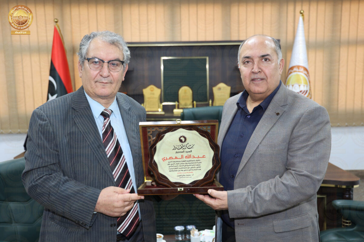 كرم رئيس مجلس إدارة جامعة إفريقيا الأهلية الدكتور سليمان الغويل، رئيس ديوان مجلس النوابعبدالله المصري الفضيل، تقديراً لجهوده الوطنية خاصةً في مجال دعم البحث العلمي.