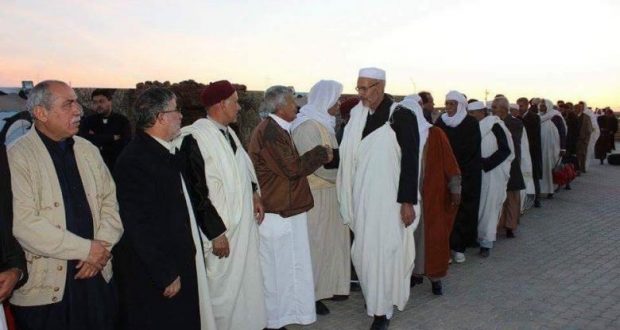 وأضاف نوري الغويزي أن وفد الأعيان ومشايخ ليبيا والجنوب توجه قبل قليل إلى قبيلة القذاذفة للاستماع إليهم والاتفاق معهم على موعد تنفيذ وقف إطلاق النار، بمعنى أن تنفيذ الاتفاق مرهون بالتزام الطرفين به.