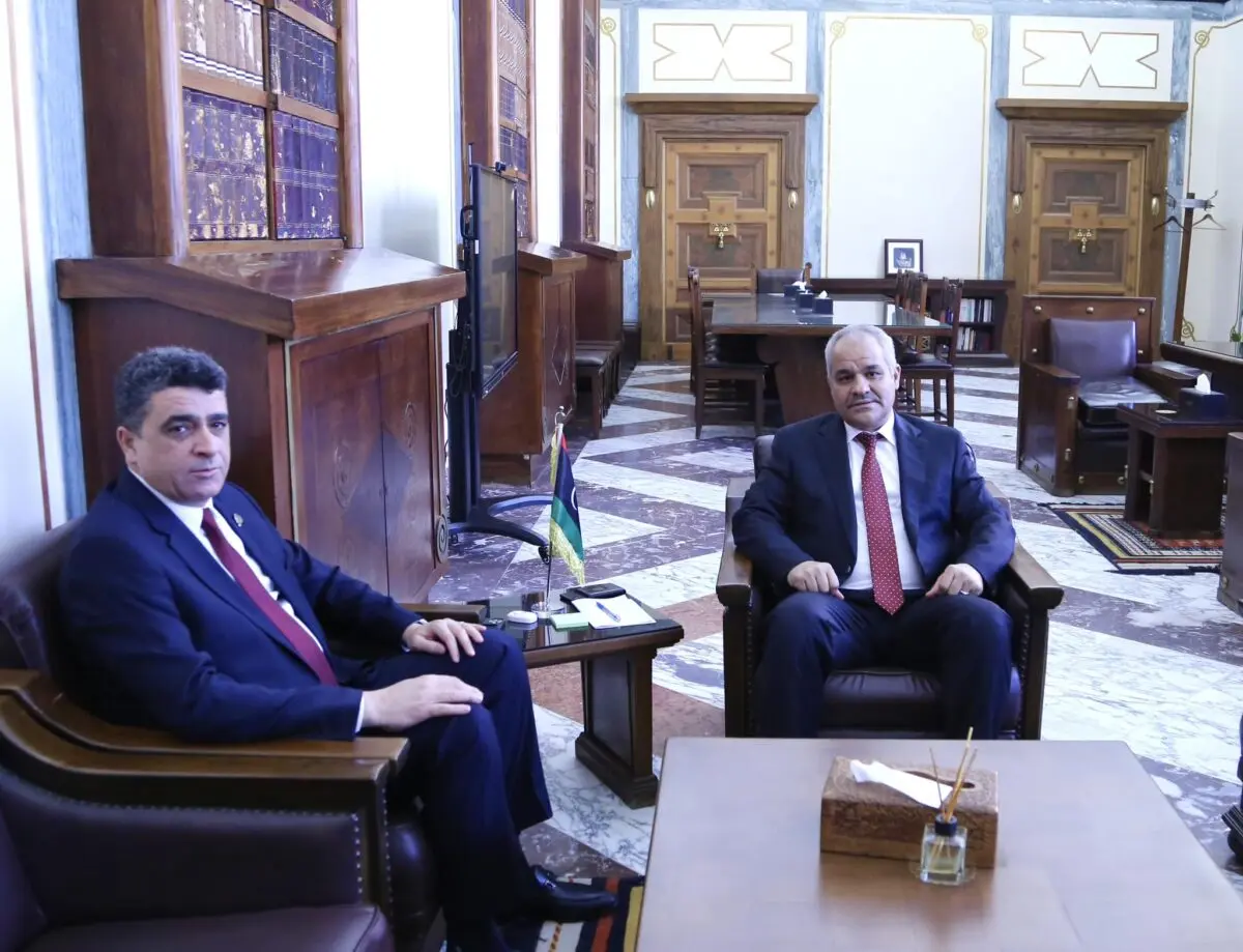 اجتمع محافظ مصرف ليبيا المركزي ناجي محمد عيسى، مع رئيس ديوان المحاسبة خالد شكشك.