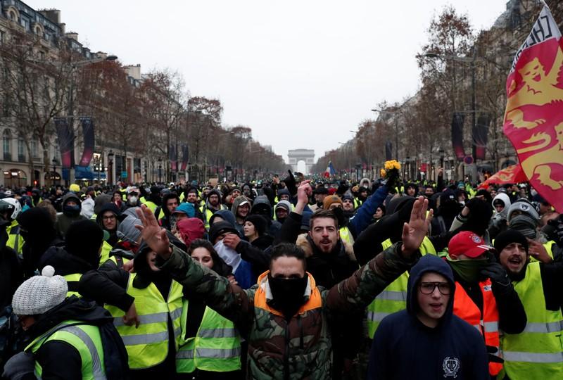 وتستمر في فرنسا احتجاجات السترات الصفراء تنديداً بارتفاع تكاليف المعيشة وسياسات الرئيس إيمانويل ماكرون، رغم اتخاذ الأخير قرارات بينها التراجع عن زيادة الضرائب على الوقود ورفع الحد الأدنى للأجور.