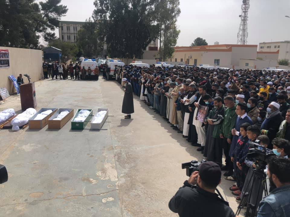 وقال المجلس في بيان له، إنه ببالغ الأسى والحزن وبقلوب تتألم من فاجعة يندى لها جبين الإنسانية تم التعرف على مصير عددٍ آخر من المفقودين المغدورين وهم: (عبد العالي المبروك النعاجي وأبنائه عبد الرحمن وعبد المالك ومحمد، إضافة لشخصين آخرين هما علي مصباح الفرجاني وراسم بشير الشفتري).