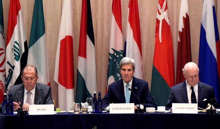 وقال كيري -في تصريحات مقتضبة للصحفيين أثناء مغادرته فندقا في نيويورك عقب لقاء المجموعة الدولية لدعم سوريا- إنه سيلتقي مجددا في وقت لاحق هذا الأسبوع نظيره الروسي سيرغي لافروف.