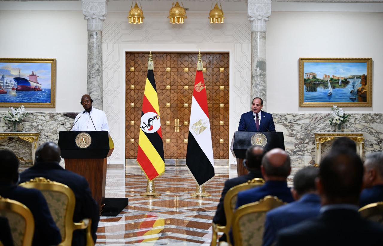 وفي مؤتمر صحفي مشترك مع نظيره الأوغندي في قصر الاتحادية، أوضح السيسي أن مصر لا تعارض أي مشاريع تنموية في دول حوض النيل، ما دامت لا تمس حصتها من المياه، لافتًا إلى أن إجمالي المياه في حوضي النيل الأبيض والأزرق يبلغ نحو 1600 مليار متر مكعب سنويًا، يُفقد معظمه في الغابات والمستنقعات والبخر والمياه الجوفية، بينما يصل جزء ضئيل فقط إلى مجرى النيل.