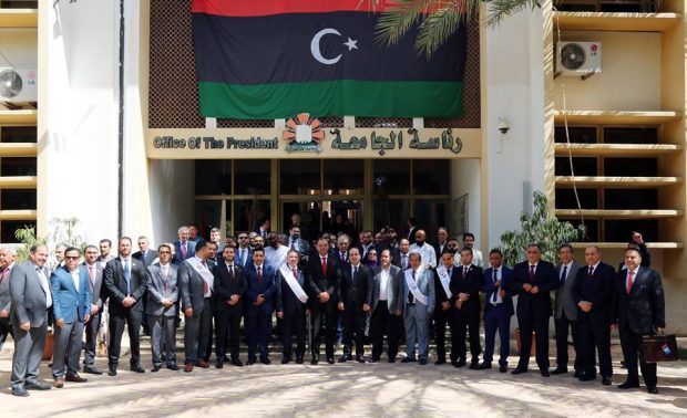 وأشاد رئيس الجامعة الدكتور “نبيل النطاح”، في كلمته أمام الحضور، بالمراحل التي مرت بها الجامعة طيلة العقود الستة الماضية واستطاعت بفضل سواعد العاملين فيها أن تكون البيت الذي احتوى طلبة ليبيا من مختلف المناطق في إطار المؤسسة العلمية العريقة التي استطاعت أن تتحصل على الرقم أربعة آلاف ضمن التصنيف العالمي، ولازالت الجهود تبذل للحصول على مراحل متقدمة في التصنيف لكي تحذو حذو الجامعات العالمية المتقدمة.