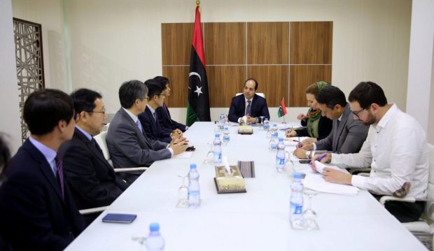 أحمد معيتيق وسفير كوريا الجنوبية تشوي سونغ سو رفقة ممثلين عن شركة داوو الكورية [ادارة التواصل بحكومة الوفاق الوطني]