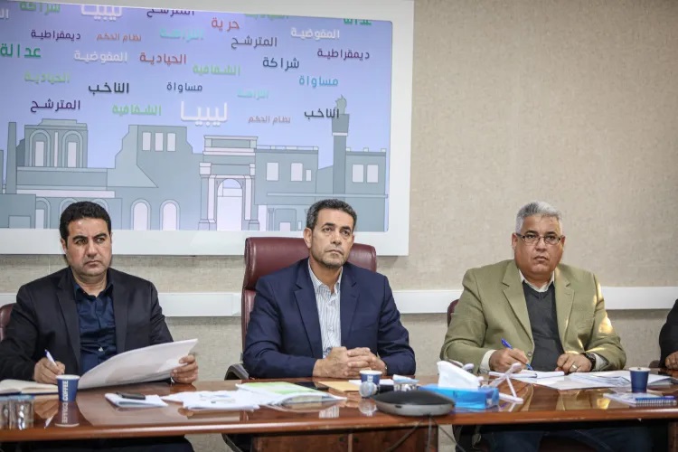 عقد رئيس مجلس المفوضية الوطنية العليا للانتخابات عماد السايح، اليوم الاثنين، بمقر المفوضية في طرابلس، اجتماعاً بحضور عضو المجلس عبد الحكيم الشعاب، ضم عدداً من مديري الإدارات والأقسام بالمفوضية، وخبراء عن فريق الأمم المتحدة لدعم الانتخابات بليبيا.