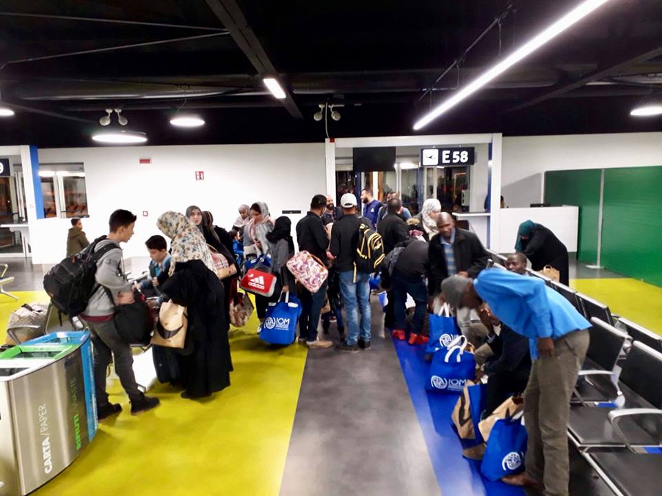 “بمساعدة من منظمة الهجرة الدولية غادرت العائلات التي تم إعادة توطينها من طرابلس إلى روما، رغم الاشتباكات المتقطعة التي وقعت قرب مطار معيتيقة في الليلة السابقة”.