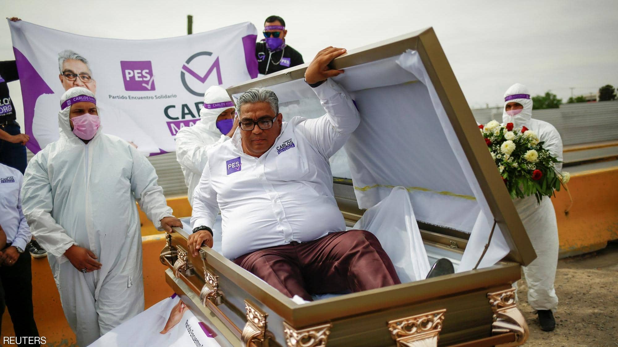 مُرشح للانتخابات البرلمانية في المكسيك، أطلق حملته الانتخابية، بطريقة غريبة، حيث بدأ بالترويج لبرنامجه الانتخابي من داخل نعش.