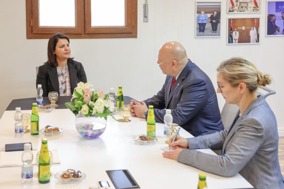 استقبلت وزيرة الخارجية والتعاون الدولي بحكومة الوحدة الوطنية نجلاء المنقوش، اليوم الخميس، بمقر الوزارة في طرابلس، المدعي العام للمحكمة الجنائية الدولية كريم خان.
