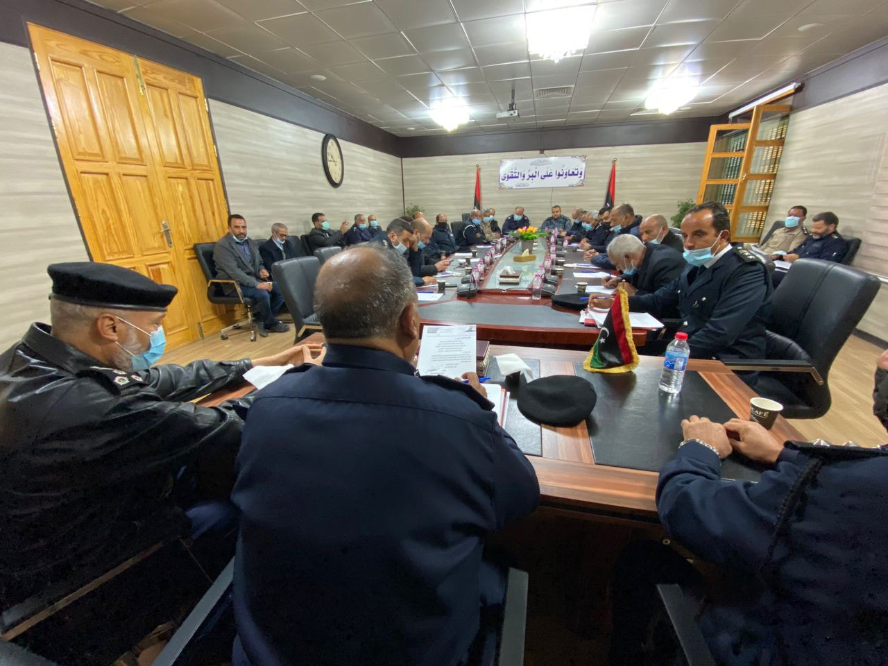 عقد المساعد للشؤون العامة والأمنية بمديرية أمن الزاوية العميد الطاهر الربيب، اجتماعاً موسعاً، اليوم الثلاثاء، بقاعة الاجتماعات في المديرية.