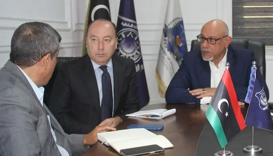 عقد مدير إدارة العلاقات والتعاون الدولي، بوزارة الداخلية في حكومة الوحدة الوطنية، اللواء نور الدين أبو جريدة، اجتماعا مع المنسق الإقليمي لمشروع المساعدة في عمليات إعادة المهاجرين غير الشرعيين طوعيًا، فينتشينسو تالفيري، بحضور رئيس مكتب التعاون الدولي بالإدارة، أبو مدين الخالقي.