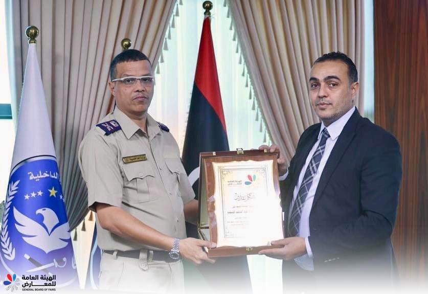 منحت الهيئة العامة للمعارض، الأحد، درع الوفاء والتقدير لإدارة إنفاذ القانون، تقديرا لجهودها في استرجاع كافة العقارات المنهوبة من معرض طرابلس الدولي.