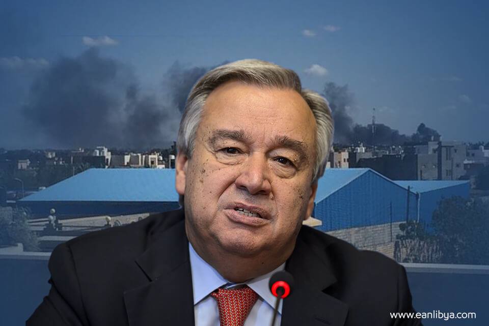 أدان الأمين العام للأمم المتحدة أنطونيو غوتيريش، بشدة التصعيد العسكري والقتال المستمر في طرابلس وحولها، بما في ذلك الهجوم الجوي الذي شنته طائرة تابعة لقوات حفتر على مطار معيتيقة.
