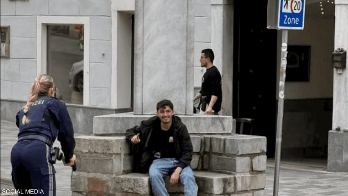 وتداول نشطاء على مواقع التواصل الاجتماعي، صورة قالوا إنها “تعود للشاب السوري وهو يظهر مبتسما أمام شرطية نمساوية تحاول توقيفه”.