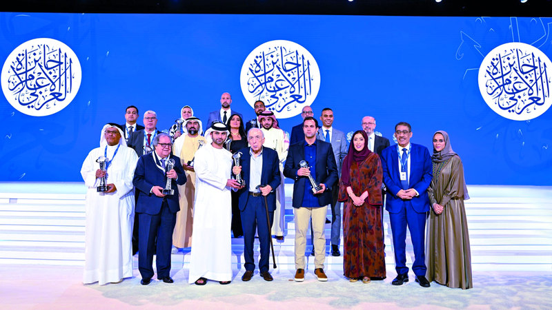 كرم الشيخ منصور بن محمد بن راشد آل مكتوم رئيس مجلس دبي الرياضي، بحضور الشيخة لطيفة بنت محمد بن راشد آل مكتوم، رئيسة هيئة الثقافة والفنون في دبي، الفائزين بـ”جائزة الإعلام العربي” في دورتها الـ23.