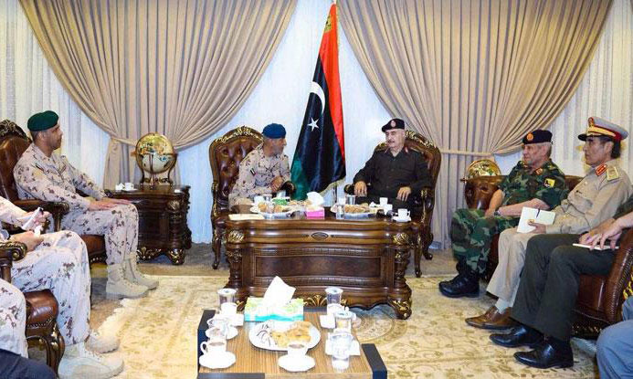 استقبل «خليفة حفتر» قائد عملية الكرامة، في مقر قيادته بمدينة بنغازي، نائب رئيس الأركان العامة بدولة الإمارات الفريق الركن «عيسى المزروعي».
