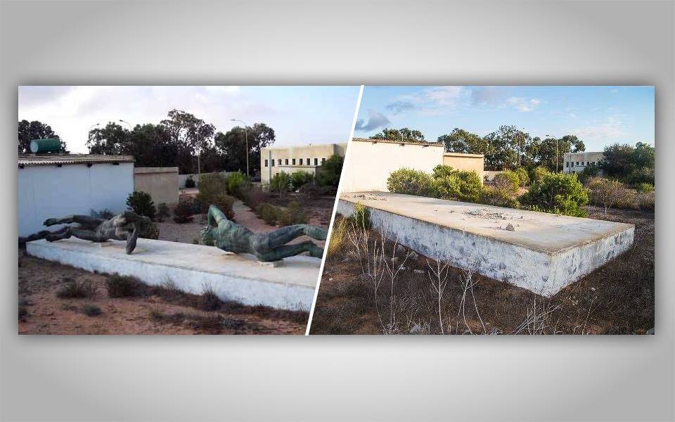 ناشطون يتداولون صور لإختفاء التمثال البرونزي للأخوين فيليني من موقعه في منطقة سلطان الأثرية شرق مدينة سرت