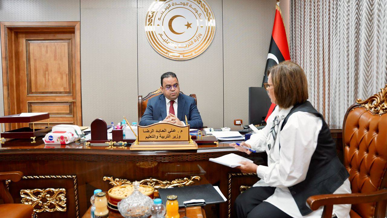 عقد وزير التربية والتعليم المكلَّف بحكومة الوحدة الوطنية المهندس علي العابد ظهر اليوم بديوان الوزارة اجتماعًا مع مدير إدارة الخدمة الاجتماعية والصحة المدرسية الدكتورة فوزية بن غشير، لمناقشة عدد من البرامج والموضوعات المرتبطة بسير العملية التعليمية.