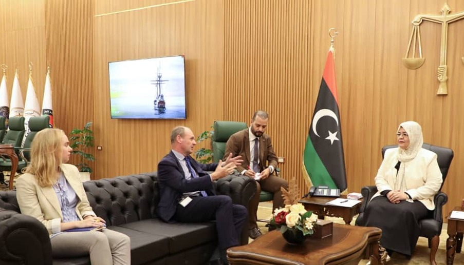 استقبلت وزيرة العدل بحكومة الوحدة الوطنية حليمة ابراهيم، سفير مملكة هولندا لدى ليبيا جوست كلارينيك، ومرافقته يويلا بلانكيستيغن، مسؤول ملف حقوق الإنسان وسيادة القانون بالسفارة.
