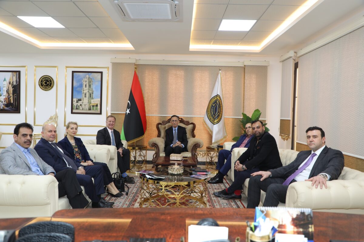 استقبل وزير الاقتصاد والتجارة في حكومة الوحدة الوطنية محمد الحويج، رئيس مجلس إدارة الشركة الليبية لإدارة مشاريع المشاركة مع القطاع الخاص عبدالمجيد عبدالكريم ورئيس مؤسسة «بيكر» العالمية للاستشارات الاقتصادية والاستثمارية دوغلاس بيكر، وأصحاب الشركات العالمية الرائدة بعدد من المجالات.