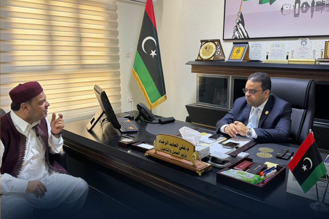 التقى وزير العمل والتأهيل المهندس علي العابد الرضا، مدير مكتب العمل والتأهيل في بنغازي طارق هيبة المشيطي، للاطلاع على سير العمل بالمكتب.