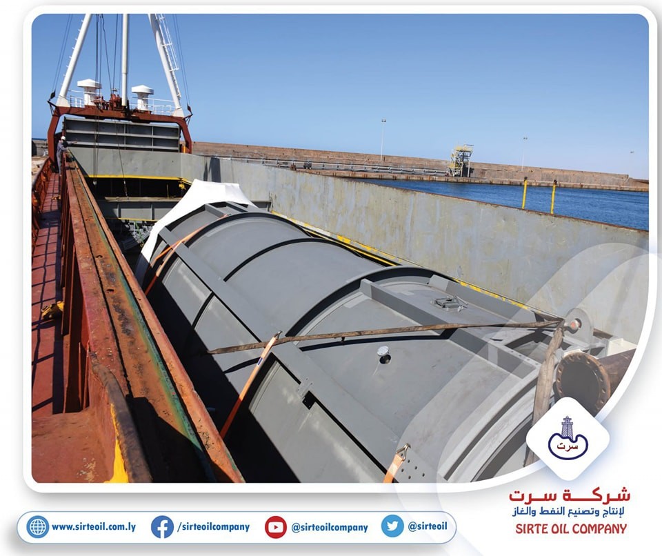 أعلنت شركة سرت لإنتاج وتصنيع النفط والغاز، وصول المُسخّن الحراري، أحد المكونات الرئيسية لتشغيل مصنع الميثانول الثاني، إلى ميناء مرسى الحريقة النفطي.