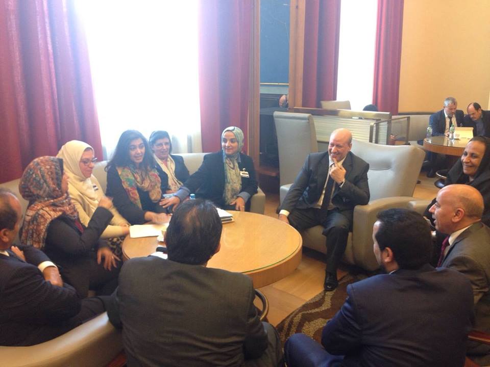 وذكر مصدر داخل الجلسة في تصريح ان الوفد النسائي التقى برؤساء وممثل الأحزاب المشاركة في الحوار وطلب منهم الدعم في مطالب المرأة بخصوص المجلس الرئاسي والوزارات وما نتجت عنه ورشة العمل التي عقدت مؤخرا في تونس.