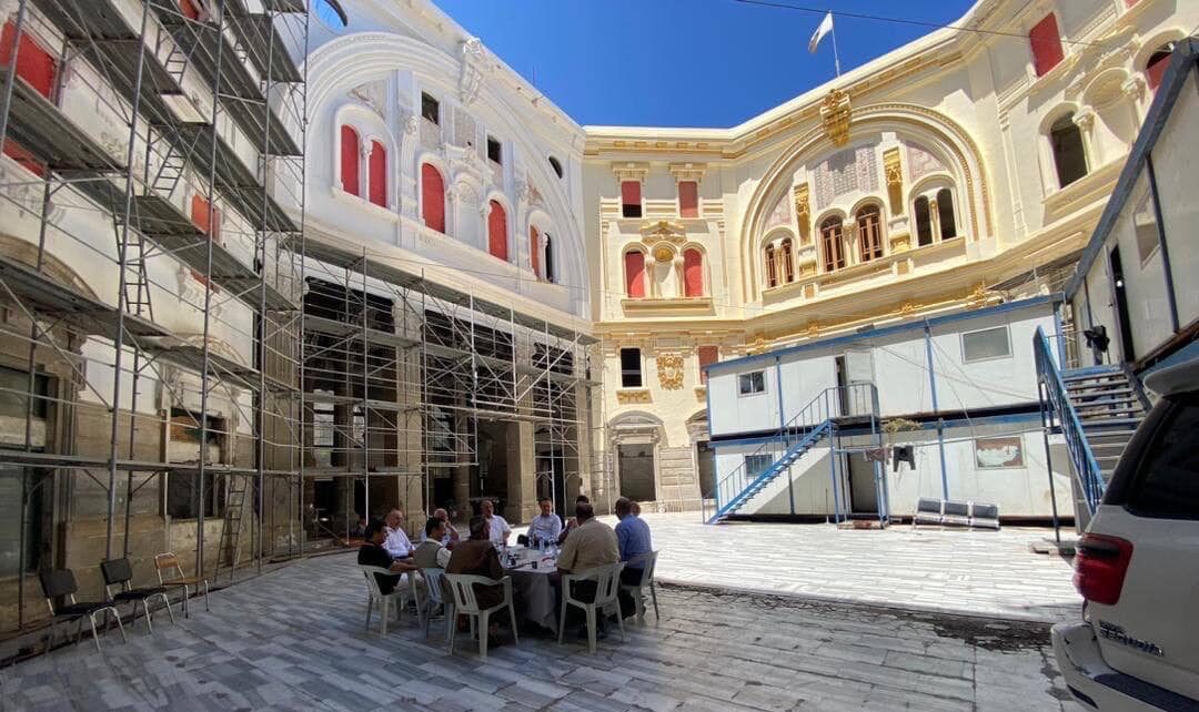 وقام الوفد بزيارة مبنى الجالاريا دي بونو (رواق الكرامة) بطرابلس، بحضور مدير شركة اليقين القابضة المنفذة لأعمال الصيانة والترميم للمبنى ماجد محمد حيث اطلع الوفد على المخططات والتصاميم التي أعدتها الشركة المنفذة لأعمال الصيانة والترميم للموقع.