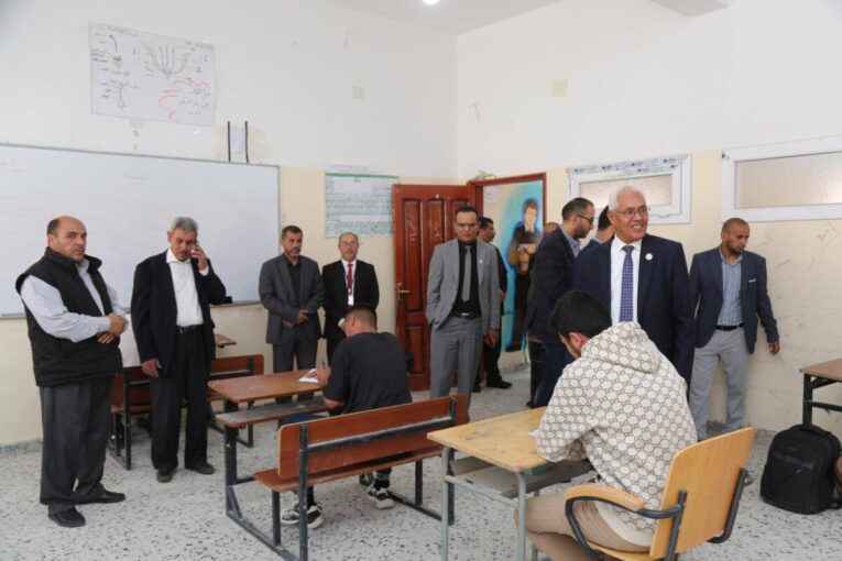 وشملتْ الجولة “زيارة مدرستَي الشهيد إمحمد دغيم للتّعليم الأساسي، والمرحوم محمد طلعيه للتّعليم الثانوي، حيث اِطّلع الوفد على سير اِمتحانات الفترة الثانية لشهادتَي إتمام مرحلتَي التّعليم الأساسي والثانوي، وتفقّدوا أوضاع العملية الاِمتحانية داخل لجان المراقبة، واستمعوا خلالها إلى ملاحظات المُعلّمين والتلاميذ والطلاب حول مستوى الاِمتحانات، وطبيعة الأسئلة، ومدى ملاءمة الوقت المخصص لها”.