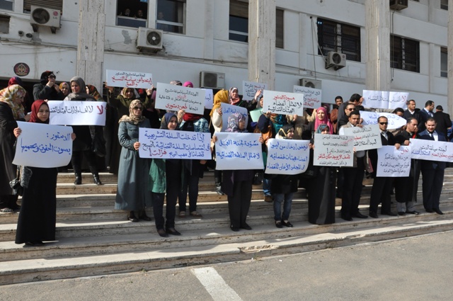 نظم عدد من منظمات المجتمع المدني، وقفة احتجاجية رافضة للمسودة الثانية للجنة العمل بالهيئة التأسيسية لصياغة مشروع الدستور أمام المحكمة العليا، طرابلس.