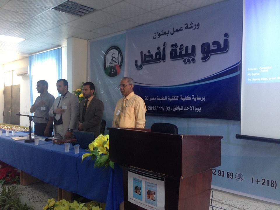 تقام اليوم في كلية التقنية الطبيّة بمصراتة ورشة عمل ويوم علمي خاص بالبيئة تحت عنوان “نحو بيئةٍ أفضل” بإشراف مجموعة من الدكاترة المختصّين بقسم البيئة بالكلية.