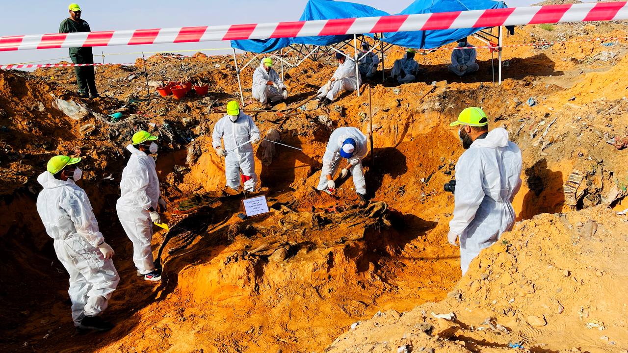 قال مدير مكتب الإعلام بالهيئة العامة للبحث عن المفقودين عبدالعزيز الجعفري إنّ فرق الهيئة انتشلت 42 جثة مجهولة الهوية من داخل مقبرة جماعية اكتشفت في مدرسة ابن خلدون بمدينة سرت.