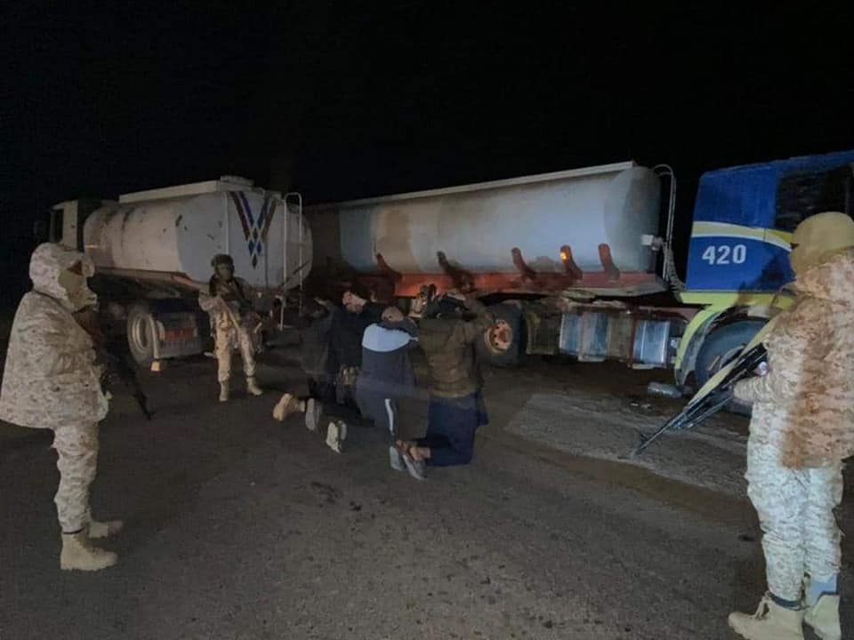وأفاد اللواء في بلاغ عبر صفحته الرسمية على فيسبوك، بأنه وبتعليمات آمر منطقة طرابلْس العسكريّة اللّواء عبدُالقادر منصور، تمكّّنت مفارز اللّواء 444 قِتال، فجرَ اليوم الخميس، وفي كمين محكم وسَط الصّحراء من القبض على 9 أشخاص مسلّحين يقتادون شاحنتان محمّلتان بعدد 60 ألف لتر وقود معدّة للتّهريب.