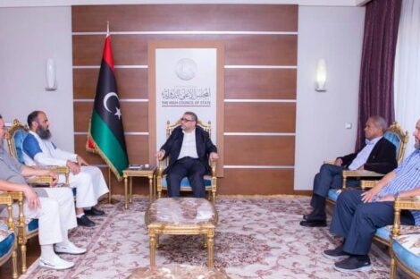استقبل رئيس المجلس الأعلى للدولة خالد المشري رفقة نائبه الأول محمد بقي وعضو المجلس الطاهر المكني أمس الأحد، وفداً...