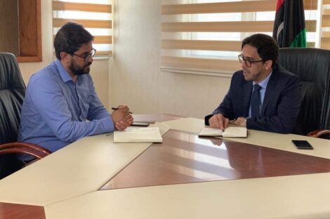 اجنمع عضو لجنة الطوارئ ورئيس مجلس إدارة الشركة القابضة للاتصالات فيصل قرقاب مع يوسف بديري عميد بلدية غريان، بحضور...