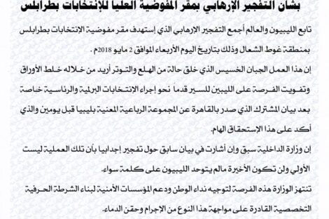 عين ليبيا أدان وزير الداخلية المفوض بحكومة الوفاق الوطني العميد عبدالسلام عاشور الهجوم الإرهابي الذي استهدف المفوضية العليا...