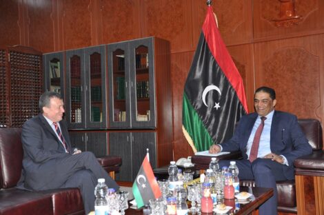 بحث رئيس مجلس وزراء الحكومة الليبية المؤقتة اليد عبدالله عبدالرحمن الثني الأحد بمكتبه في ديوان مجلس الوزراء في منطقة...