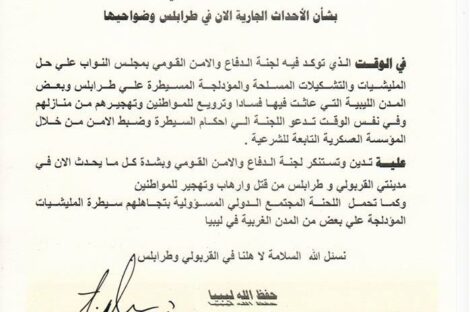 عين ليبيا أصدرت لجنة الدفاع والأمن القومي بمجلس النواب، عصر اليوم الاثنين، بيانا عبر الموقع الرسمي للمجلس وصفحاته بمواقع...