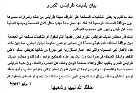 عين ليبيا كشف بيان تحذيري مشترك أصدرته بلديات طرابلس المركز، سوق الجمعة، حي الاندلس، نشر عبر صفحاتها الرسمية على...