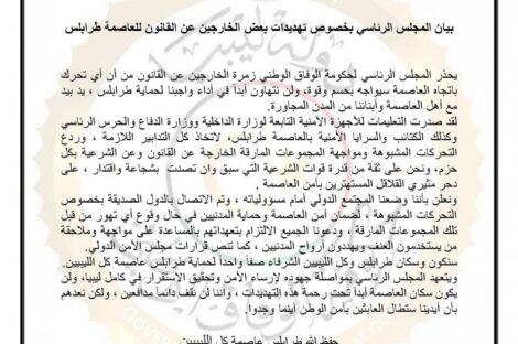 عين ليبيا حذر المجلس الرئاسي لحكومة الوفاق الوطني من اسماهم بـ«زمرة الخارجين عن القانون» من أن أي تحرك باتجاه...