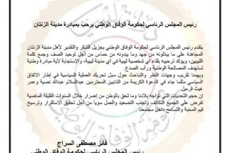 عين ليبيا رحّب المجلس الرئاسي لحكومة الوفاق الوطني بالمبادرة التي تقدمت بها مدينة الزنتان متمثلة في لقاء يجمع...