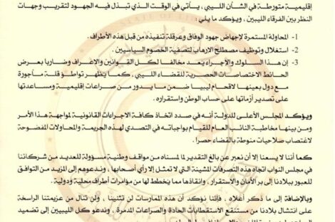 عين ليبيا أصدر «المجلس الأعلى للدولة» بيانا حول تقرير فريق الخبراء التابع »للأمم المتحدة والذي أكد فيه التدخلات الصارخة...