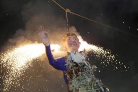وكالات أحرق مكسيكيون يحتفلون بأحد طقوس عيد القيامة دمى لدونالد ترامب المرشح المحتمل في انتخابات الرئاسة الأميركية الذي أثارت...