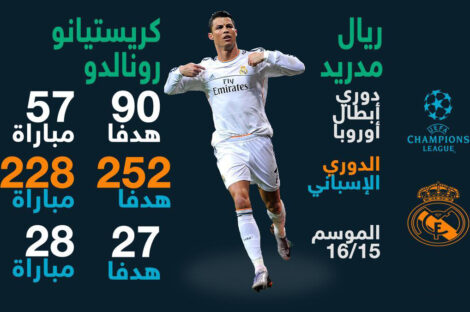 وكالات يواصل لاعب المنتخب البرتغالي ونادي ريال مدريد الإسباني كريستيانو رونالدو تحطيم الأرقام القياسية على صعيدي بطولة دوري أبطال...