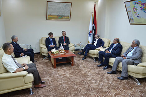 صنع الله يلتقي بيتر ميلت بمقر مؤسسة النفط في طرابلس