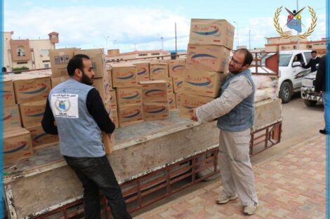 بنغازي.. الليبية للإغاثة تُوزع مساعدات على سكان المدينة