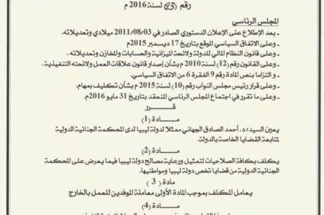 وكالة ليبيا الرقمية عيّن المجلس الرئاسي لحكومة الوفاق الوطني في قرار أصدره اليوم الثلاثاء بالعاصمة طرابلس ،”أحمد الجهاني” ممثلاً...