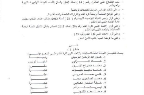 وكالات اصدر الاتحاد الليبي لكرة القدم قرار رقم “46” لسنة 2016، أعاد من خلاله تشكيل اللجنة العامة للمسابقات برئاسة...