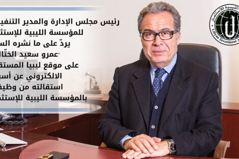 عين ليبيا رد رئيس مجلس الإدارة والمدير التنفيذي للمؤسسة الليبية للإستثمار، السيد عبدالمجيد بريش على ما نشره السيد “عمرو...