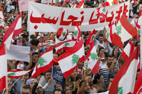 هتف متظاهرون لبنانيون السبت بكلمة “ثورة” وهم يسيرون وسط حشود ويلوحون بالأعلام في وسط بيروت، وهتف آخرون “الشعب يريد...